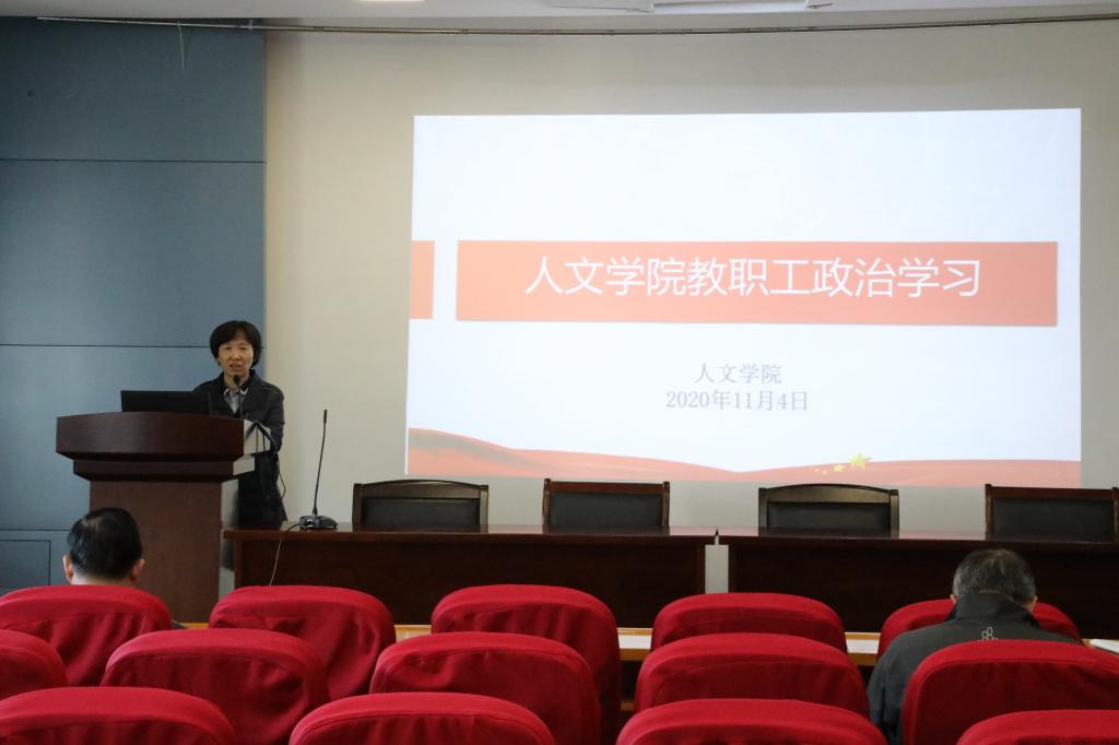 会上,党委书记姚剑英领学了中国共产党第十九届中央委员会第五次全体会议的会议精神,她传达领学“十四五”时期经社会发展的指导方针、主要目标、重点任务,以及传达加强党中央集中统一领导,推进社会主义政治建设,健全规划定制和落实机制等内容。她指出实现“十四五”规划和二〇三五年远景目标,意义重大,任务艰巨,前景光明。学院教职工要紧密团结在以习近平同志为核心的党中央周围,同心同德,顽强奋斗,为全面建设社会主义现代化国家贡献自己的力量。此外,她还领学了中央办公厅、国务院办公厅发布的《关于全面加强和改进新时代学校体育工作的意见》《关于全面加强和改进新时代学校美育工作的意见》;《习近平谈治国理政》第三卷。全体教职工认真领会了学习内容,一致认为此次政治学习有凝聚共识,明确方向的作用,有助于更好的立德树人。此外,会上姚剑英还通报了近期的学生就业情况,副院长于书娟通报了教学工作安排。