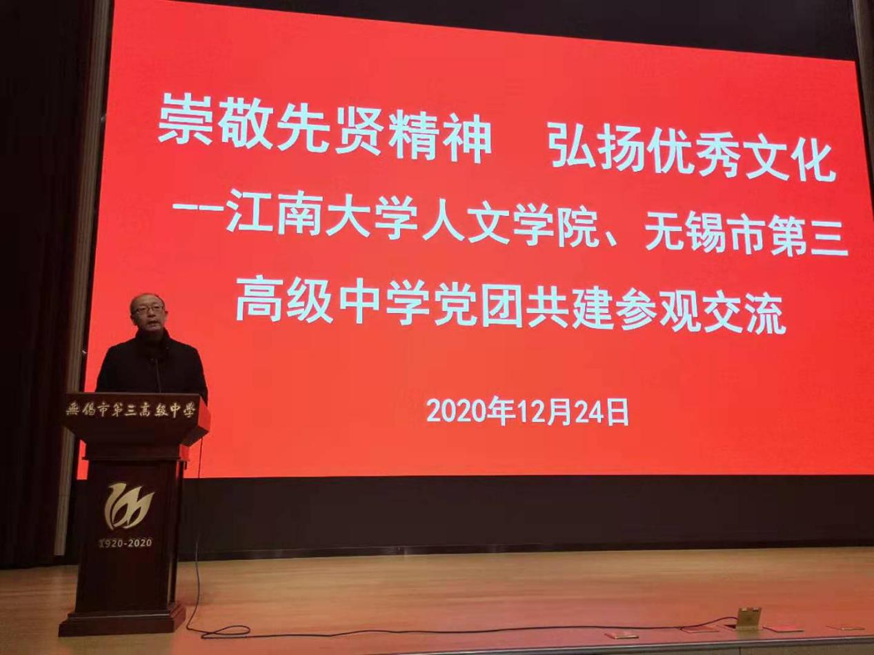 本次参观学习得到了无锡市第三高级中学相关老师的热情接待。活动开始,三高中党委书记、副校长邹宝生老师发表了讲话,他首先欢迎老师同学们的到来,并向大家介绍了三高中的办学历史,播放了三高中百年校庆纪录片、无锡国专纪录片与学生诵读《人格》视频,通过邹校长的介绍,同学们了解了学校创立者高阳先生毁家兴学、至公无私的教育盛举,首任校长唐文治先生及其相关教育事迹,也了解了三高中对于唐文治先生教育思想的传承与发扬。更重要的是,邹书记的讲话让同学们逐步走入了上世纪初中国“教育救国”的历史事实,一代中国教育家为提高民族文化素质奔走呼号,“用教育的力量来挽救国家的危亡”。