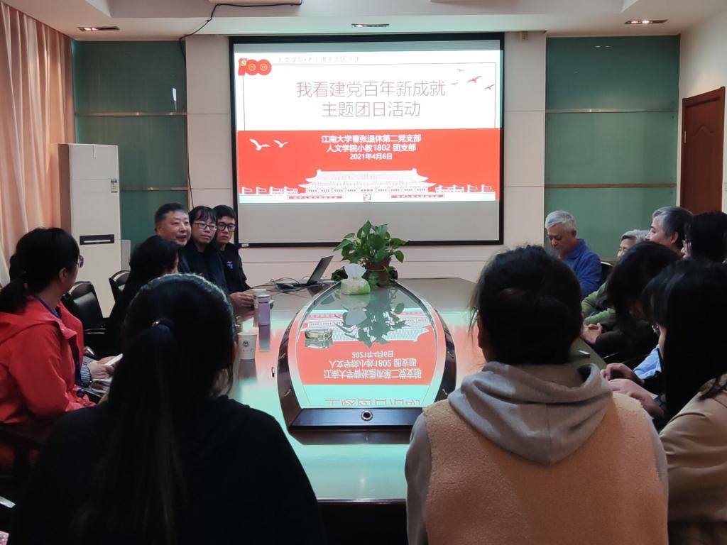 4月6日下午,江南大学曹张退休第二党支部和必赢626net入口首页小教1802团支部在田家炳楼207会议室开展了主题为“谈成就学党史 不忘初心思传承”党团共建活动。来自退休第二党支部的7名老党员老同志、学院党委副书记李萍、分团委书记赵丽敏参加了本次活动,活动由曹张退休第二党支部书记蒋炳华老师和小教1802团支部书记冉子豪共同主持。