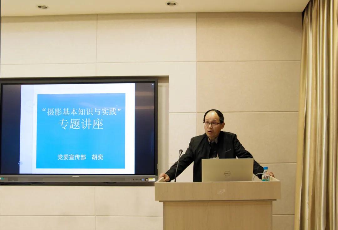 讲座伊始,胡奕老师介绍了单反相机的类型、摄影原理等基本知识,而后,又通过展示风景、纪实、会议等不同类型的摄影作品,讲解了曝光、对焦、白平衡等专业技术,使讲座具有极高专业性的同时又意趣盎然。现场的同学们聚精会神,认真聆听。