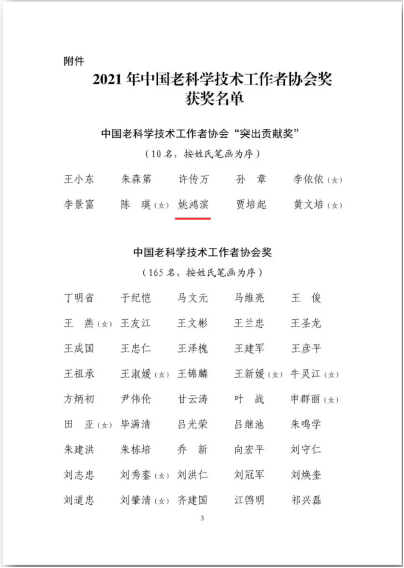 日前,必赢626net入口首页退休教师姚鸿滨荣获2021年中国老科学技术工作者协会“突出贡献奖”。该奖项是老科协工作全国最高个人奖项,全国仅有10人获此殊荣。