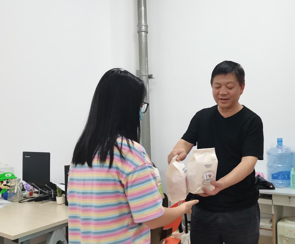月到中秋分外明,每逢佳节倍思亲。在中秋佳节来临之际,9月18下午,学院党委书记姚剑英、副院长(主持工作)田良臣、党委副书记兼副院长李萍带领学工办全体老师深入研究生工作室、学生寝室,看望慰问留校学生,为同学们带去了“江南定制版”的中秋月饼、苹果、牛奶等节日礼品,送去了诚挚的节日问候和关怀。