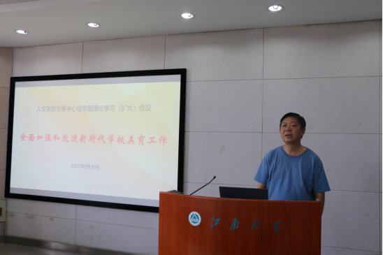 为深入学习宣传贯彻党的教育方针,9月30日下午,学院党委在田家炳楼506会议室召开党委理论学习中心组专题学习(扩大)会议,就全面加强和改进新时代学校美育工作进行了专题学习。学院党委理论学习中心组成员,江南大学国家大学生文化素质教育基地成员,音乐系、舞蹈系、中文系师生党支部书记及部分教师参加了会议。