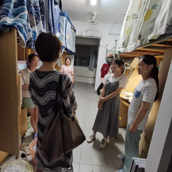 走访过程中,班主任们同新生进行了亲切的交谈,仔细询问新生进校后饮食、住宿等各方面的生活情况,提醒新生要跟父母视频、电话报平安。鼓励新生逐步提高自理、自立的能力,以积极的心态和良好的面貌尽快适应大学校园生活,习惯大学校园的学习节奏。除此之外,各班主任们还细心叮嘱了宿舍用电安全、外出交通安全、人身财产安全等问题,提醒新生们做好疫情期间的自我防护工作。各位副班主任也结合自己在学校的学习、生活经验,为同学们解疑答惑。