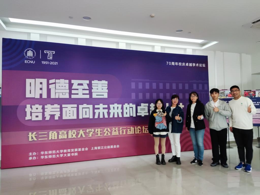 10月17日,由华东师范大学发展基金会、上海紫江公益基金会主办,华东师范大学大夏书院承办的华东师范大学70周年校庆卓越学术系列讲座“明德至善:培养面向未来的卓越人才——长三角高校大学生公益行动论坛”在华东师范大学闵行校区光学大楼报告厅举行,必赢626net入口首页“心手相牵”推普实践团受邀参加了本次论坛并作主题交流发言,学院党委副书记兼副院长李萍、分团委书记赵丽敏、学生工作指导老师赵将、2019级小学教育专业朱程辉和汉语言文学专业廖闻渊代表团队参与本次活动。