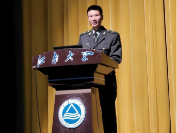接着,新生代表小教2104班林倩倩同学发言,她从河南暴雨灾害中人民子弟兵积极参与抗洪救灾的事迹出发,分享了自己对军训的理解,并代表参训学生做出承诺在军训中要磨而不磷,涅而不缁,乘长风,破万浪,力争“雏凤清于老凤声。”