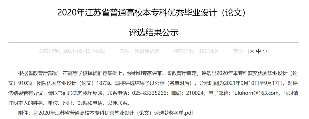 近日在江苏省教育厅公布的2020年江苏省普通高校本专科优秀毕业设计(论文)评选结果中,我系马志强教授指导管秀同学完成的本科毕业论文《基于社会认知网络的协同观点论证分析》获得优秀论文二等奖。