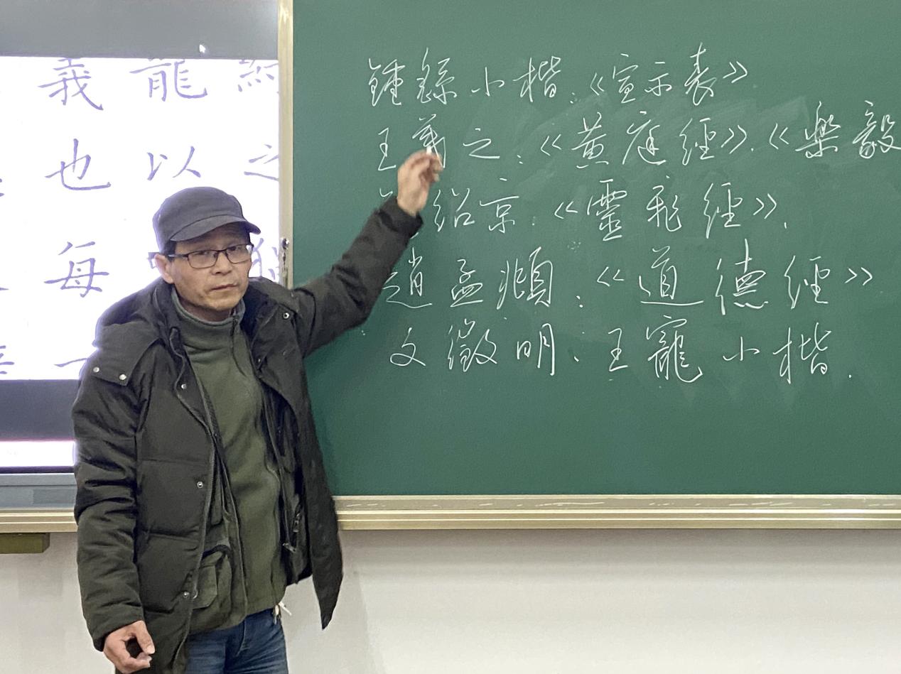 近日,必赢626net入口首页书法“小先生”培训在艺术楼书画室顺利举行。本次活动邀请到党委宣传部胡奕老师前来指导,技能中心王均霞老师主持活动。