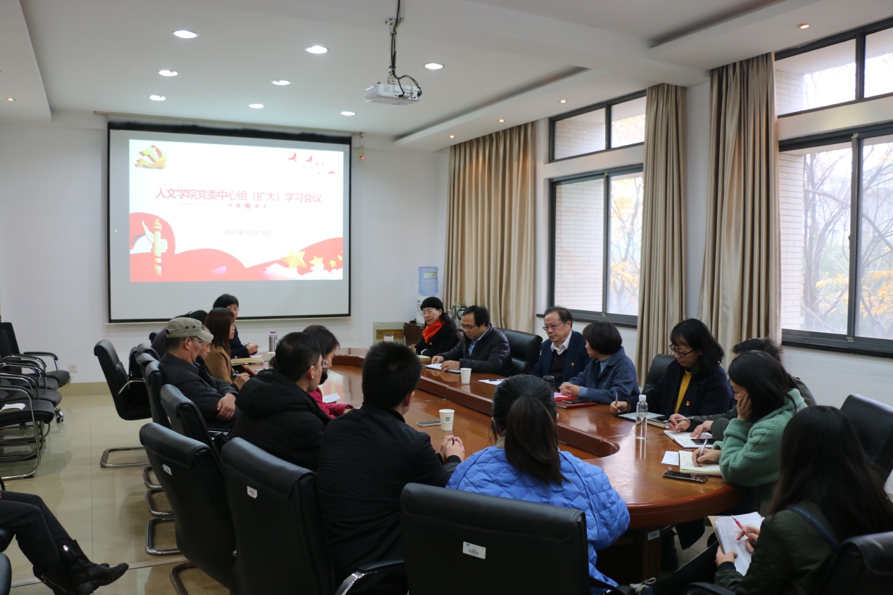 12月15日下午,校党委书记朱庆葆参加学院党委理论学习中心组(扩大)学习会。学院党委理论学习中心组成员、中文系教工党支部党员参加学习。会议由学院党委书记姚剑英主持。