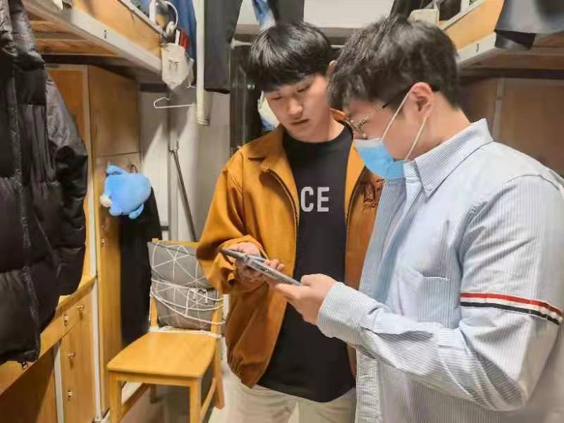 专业课老师们坚守“云课堂”,将专业知识传授给屏幕另一头的同学;行政教辅老师坚守岗位,在疫情期间也能提供一如往常的相关服务;辅导员老师们,每天核对同学们体温数据和核酸检测数据,叮嘱疫情期间保持良好学习和生活状态,培养健康向上、积极平和的心态,开展“门铃行动”,对所有在校学生的“兜底翻”式大排查,逐户上门走访。深入学生宿舍,为同学们发放口罩、体温计、消毒液等防疫物资。通过QQ群、微信群和线下渠道,及时发布相关信息,调研学生状态,组织“先锋队伍”,安排学生党员、学生干部精准对接“限动宿舍”,解决限动同学的就餐问题。为了帮助考研同学顺利参加线上复试,学院协调“考研复试专用房间”,解决线上复试的场地、设备和技术支持方面的问题,为考研同学提供温馨帮助。学院专门召开疫情防控及安全工作专题班主任会议,对疫情防控校园的常态化管理、疫情期间学生心理问题工作、毕业生就业工作等问题进行研究和部署。学院深入落实教职工党员联系学生宿舍制度,在疫情防控升级的特殊时期,教职工党员通过微信群、QQ群、企业微信群组与宿舍走访等与学生联系对接,关心学生学习生活状态。教师团队坚守一线, 细致温暖,凝聚起“想得起”“找得到”“靠得住”的“守护力量”。