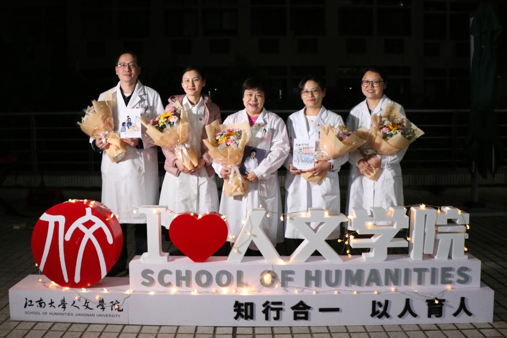 参与活动的师生与医护人员合影
