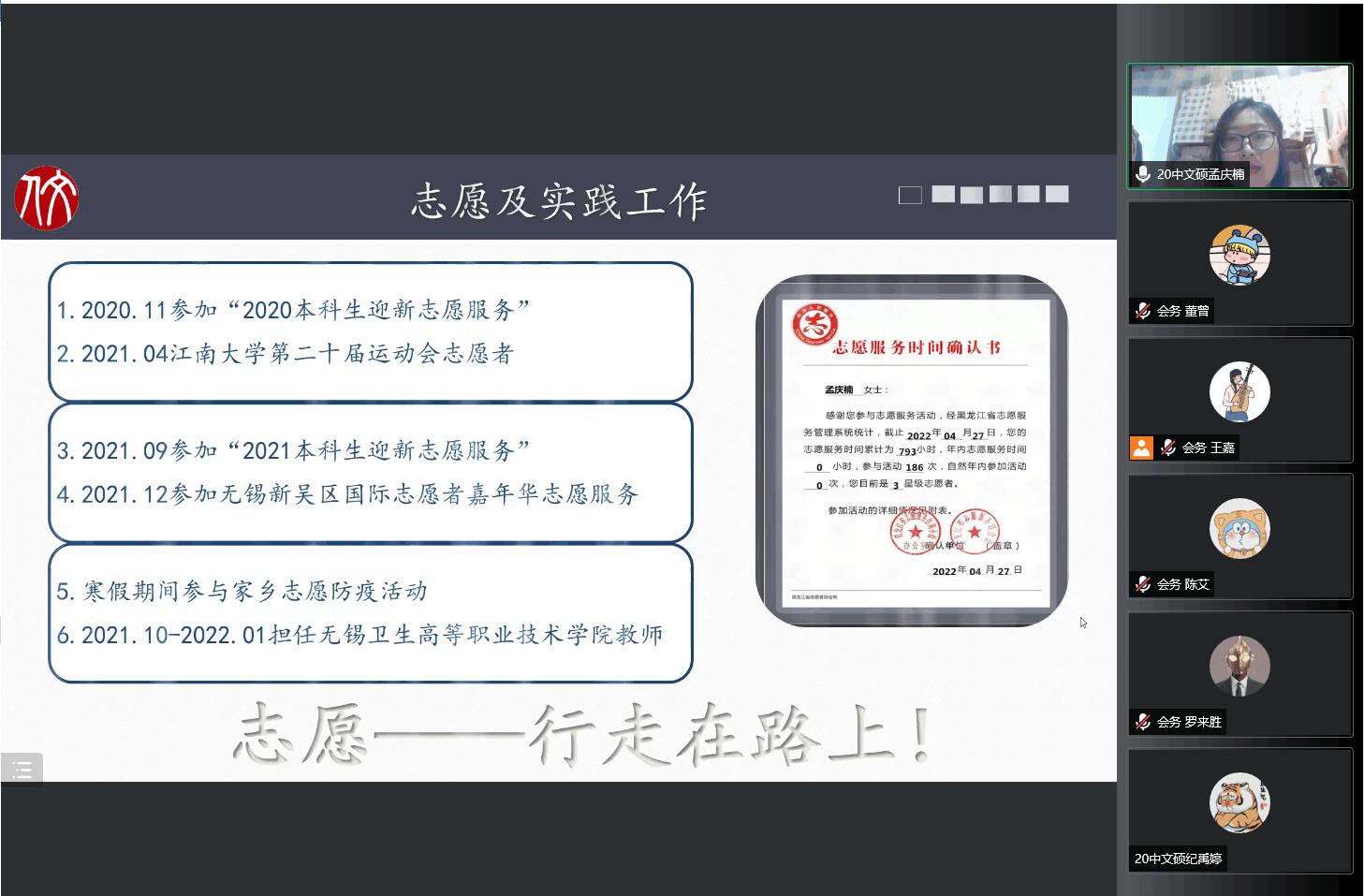 4月29日下午,必赢626net入口首页文法奖学金答辩会于线上举行。学院党委副书记、副院长李萍、副院长于书娟、副教授黄艳萍、舒航、分团委书记赵丽敏及灵山慈善基金会陈睿等出席答辩会并担任评委。