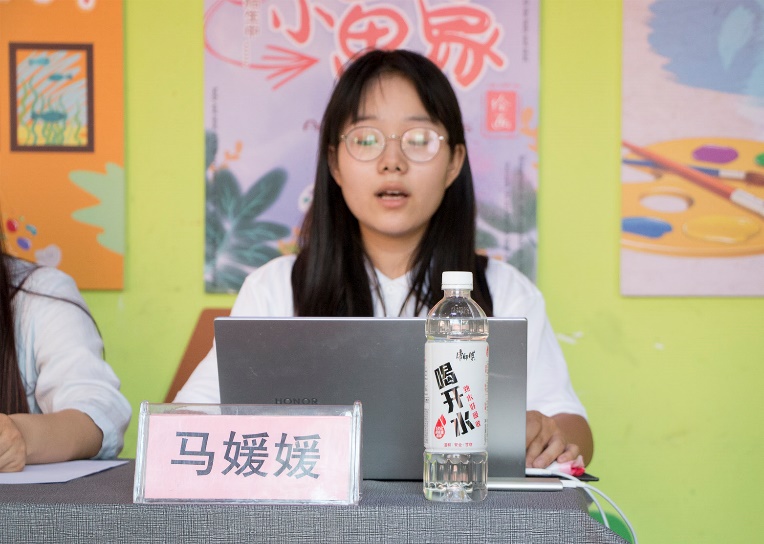 在接下来的环节中,“童声同语”推普助力乡村振兴实践团队长马媛媛介绍推普实践团、团队成员及活动项目情况,她代表实践团全体成员表示对因地制宜探索推广普通话最优方案的决心,荟萃青春凝聚力、扩大推普影响力从而共筑民族凝聚力。