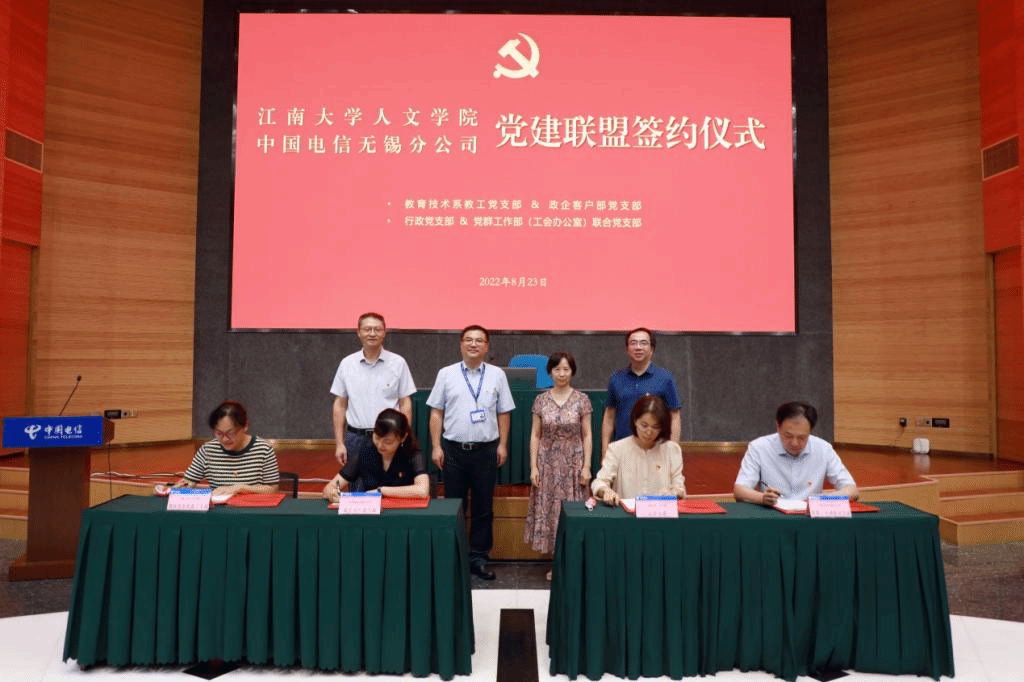 签约仪式上,必赢626net入口首页行政党支部书记胡智丹与中国电信无锡分公司党群工作部(党委办公室)党支部书记、主任商杰签署党建联盟协议,教育技术系党支部书记王萌与政企客户部党支部书记、主任高芳签署党建联盟协议。四位党支部书记从党员“联学”、品牌“联创”、资源“联享”、服务“联动”四个方面,就开展结对共建活动的意义与具体思路进行了交流探讨。