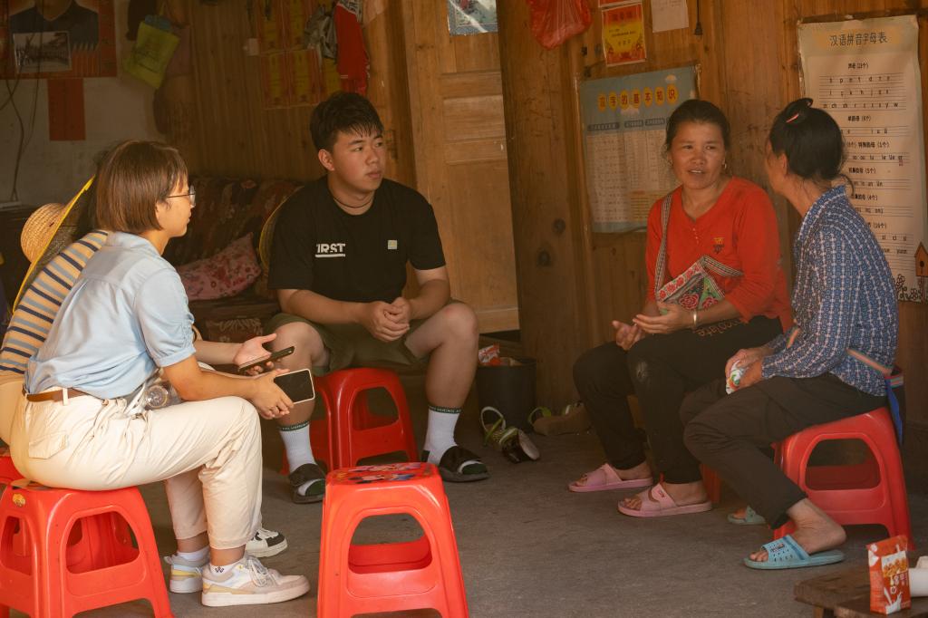 为了获得最丰富、最真实的调研数据,实践团成员克服山高路远、天气多变、水土不服等困难,坚持到村民家中进行访谈。团队成员的调研路程累计超过120公里山路,从今努到广宇,从独洞小学到新寨、己重,团队调研范围覆盖独洞村的9个寨组以及周边村落,走访对象涉及村民、教师、学生、外出务工者以及村干部等等不同群体,以广泛的调研访谈获得了丰富客观有效的信息数据。其中一位50余年党龄的老奶奶,作为当地极少数可以使用流利使用普通话的老人,坚持用普通话向一代代独洞青年传授红色革命歌曲和故事。这位老党员的故事更是坚定了团队成员推普助力乡村振兴的决心。