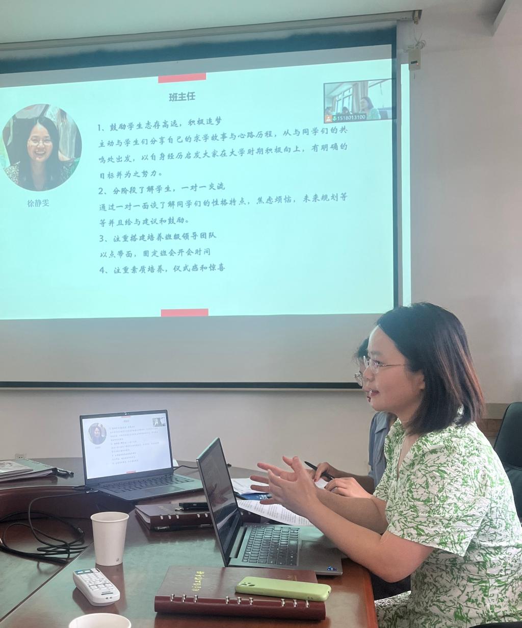 会上,张慧汇报了2022级新生的基本情况,迎新工作的具体安排,本学期的工作重点,今后的工作目标等内容。会议明确了班主任在学生报到前、开学后、上课中需要负责和参与的工作内容。