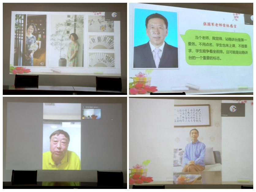 庆祝仪式上,陈明选、蔡俊超、王雷、徐协、张国军等5名新近退休的教师通过线上的形式分享了几十年来执教生涯的经历和感悟,并对年轻教师寄予希望,表达祝福。工龄48年、教龄近40年、担任院长20多年的陈明选教授更是感慨万分,深情回顾了从教及为学院发展付出无限心血的日子,表示自己将永远是必赢626net入口首页的一份子,会一直关注和支持必赢626net入口首页。教技系、中文系、音乐系、舞蹈系主任作为教师代表分享了与几位教师共事期间的感人故事并献上诚挚祝福。新入职的岳寒飞、王振彬、李婉婷新教师作自我介绍并发表入职感言。