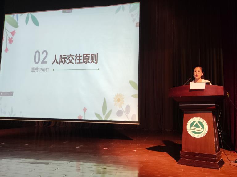 张慧通过2022年必赢626net入口首页心理健康文化节“超有趣宿舍大会”系列活动的快闪视频开启本次讲座,展示了上半年以宿舍为单位的心理健康教育趣味活动,极大调动了宿舍长的积极性。接着,她从宿舍人际交往入手,列举了几种常见的宿舍矛盾,强调宿舍长在宿舍和谐关系的构建中起到“小家长”作用。随后,她从人际交往原则、人际沟通技巧、心理调节方法等方面进行分享,结合案例讲解常见的心理问题识别与判断方法,澄清心理健康和心理咨询概念,并重点介绍了学校的心理服务资源,消除同学们对心理问题的误解,引导宿舍长积极关注和关心宿舍同学的情绪和状态,力所能及帮助宿舍同学,遇到困难主动与老师交流反馈,共同营造温暖温馨的宿舍文化氛围。