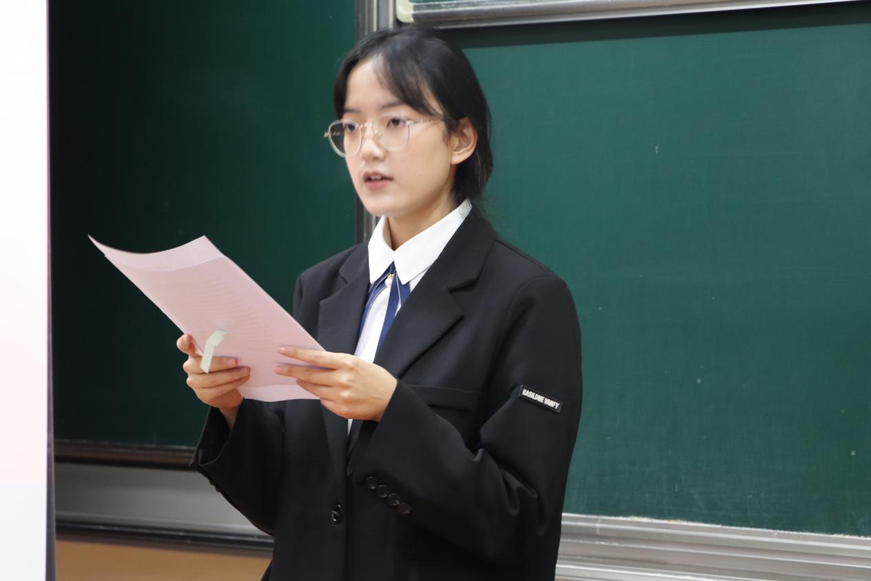 随后,新老营员代表进行了营旗交接仪式,汉语2102班孙佳蕊做新学员代表发言,她表示将会珍惜来之不易的学习机会,认真接受党的教育,不断提⾼思想觉悟,努力加强自身修养,勇于担当、用实际行动书写无愧于时代的青春华章。