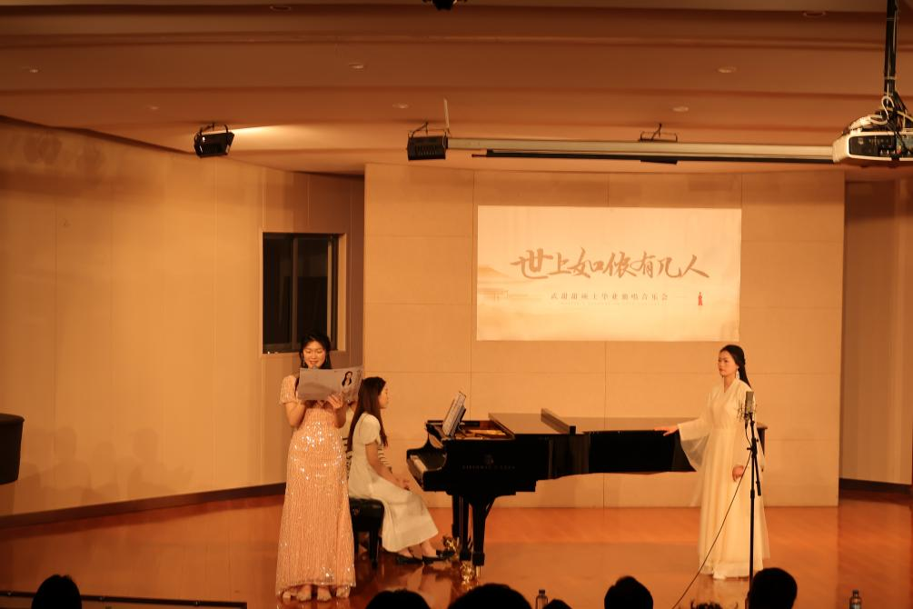 世上如侬有几人》武甜甜硕士毕业独唱音乐会于2023年2月24日在江南大学北区活动中心音乐厅成功举办。根据江南大学音乐与舞蹈学硕士音乐表演与教学专业培养要求,武甜甜在研究生三年期间大量学习不同类别的歌曲。本场音乐会以“世上如侬有几人”为主题,为我们呈现了四首中国近代古诗词艺术歌曲《渔翁道情》《蝶恋花·槛菊愁烟栏泣露》《苏小小》《青玉案·元夕》,三首地方民歌《紫竹调》《杨柳青》《一根丝线牵过河》,两首融合戏曲风格的新创作歌曲《知己红颜》《牡丹亭》与两首民族歌剧选段《等着我,亲爱的人》《来生来世把你爱》,全面地展示了大学期间声乐学习与研究成果。