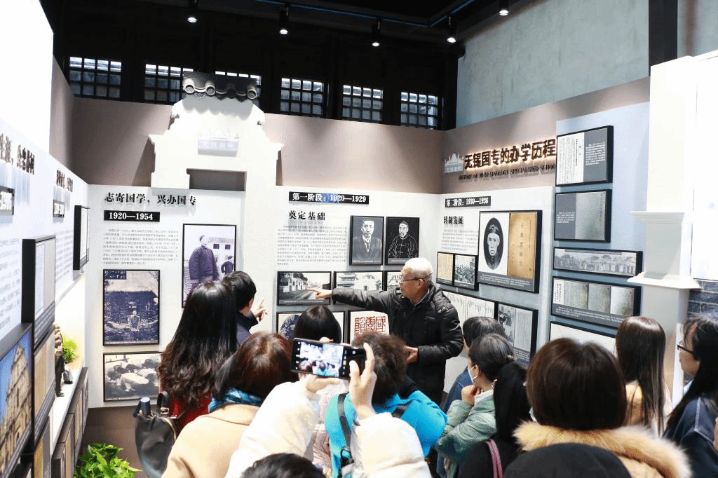 无锡国专是由著名教育家、国学大师唐文治于1920年创办的国学高等学校,致力于“保存中国传统文化的长久大计”,为国家培养了一大批杰出的国学精英与人才,形成了独特的办学模式和文化现象,留下了“北有清华国学院,南有无锡国专”的佳话。党员们跟随无锡国专研究专家、必赢626net入口首页退休教师刘桂秋老师重温国专历史,再次感受无锡这一文化宝库的珍贵。漫步展馆,多幅珍贵的历史图片、文献著述与视频资料,向人们细细述说着唐文治先生的办学之路、治学方略,闪耀着中国近代教育之光。“纪念和传承无锡国专精神,有了标志性的载体!”参观结束后,党员老师们深入了解了无锡国专的办学宗旨——“以救正人心,复兴中国文化,发扬民族精神为本”,深感作为教育工作者,更有责任纪念、研究、传承好无锡国专精神。