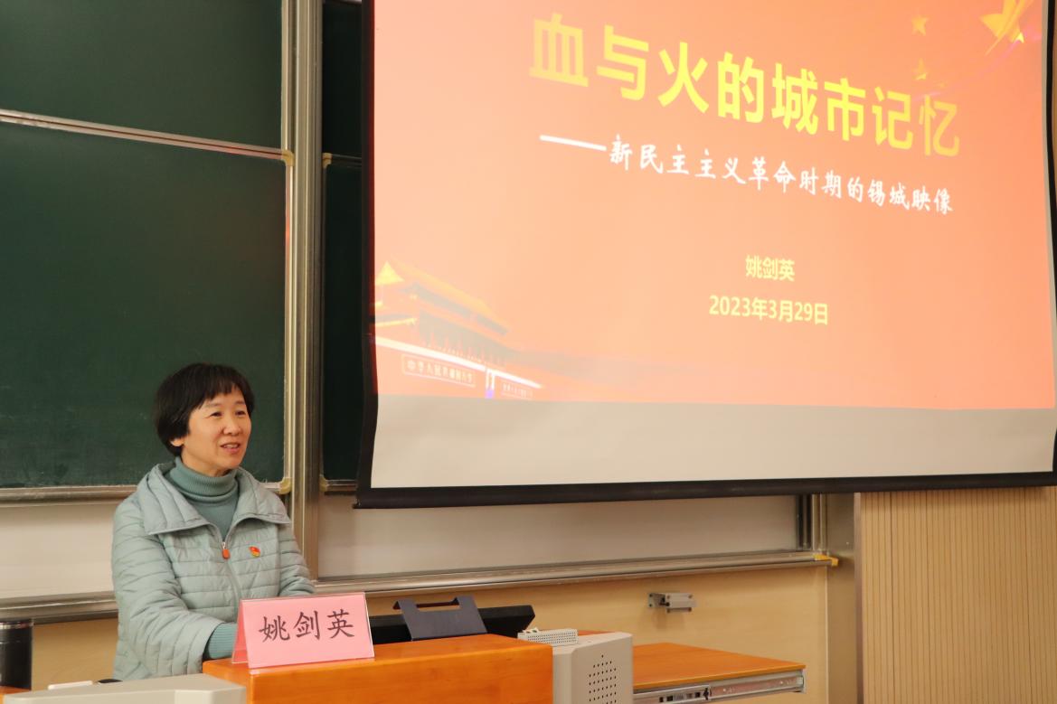 3月29日,学院党委书记姚剑英以《血与火的城市记忆——新民主主义革命时期的锡城映像》为主题,讲述了无锡党组织的发展史和革命先辈们在四个重要时期“抛头颅,洒热血”的英勇事迹,以此勉励同学们要团结起来,学习矢志不渝的忠贞奋斗品质,弘扬伟大抗战精神,向着中华民族伟大复兴的光辉彼岸奋勇前进。