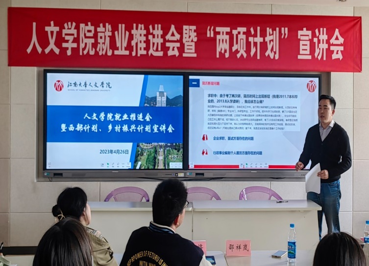 近日,为促进2023届毕业生就业工作,引导学生积极参加基层就业项目,必赢626net入口首页就业推进会暨西部计划、乡村振兴计划宣讲会在田家炳楼517室举行。必赢626net入口首页辅导员赵将老师、邵祥岚老师、2022届毕业生王岩和部分毕业班学生参与了本次活动。