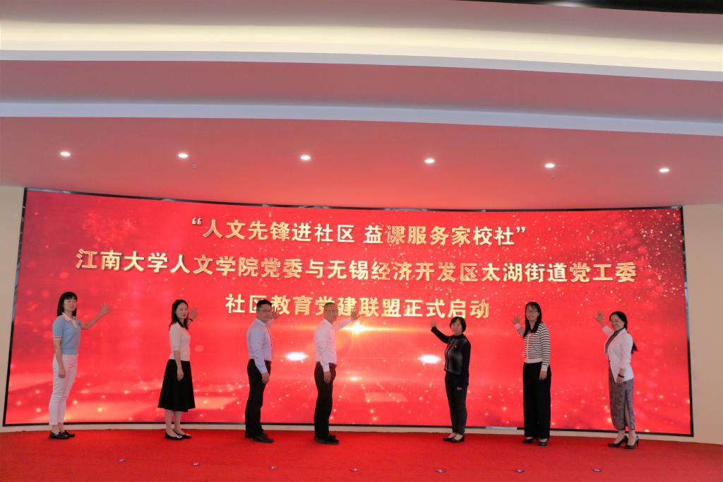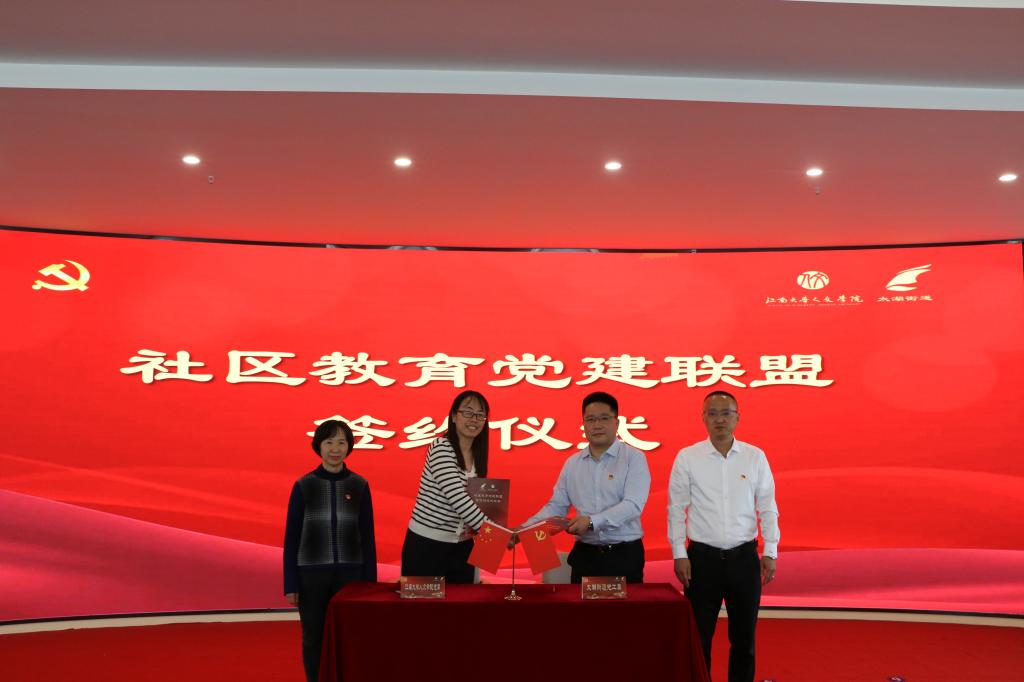 学院党委与无锡经开区太湖街道党工委社区教育党建联盟的正式启动,是以党建为引领,在家门口搭建舞台,在教育、文艺、体育、志愿、实践等领域,打造强化思想政治引领、传承优秀传统文化、培育文明新风尚等多种功能的社区教育阵地,实现党建、思政教育与专业教育的多元融合,以高质量党建引领高质量社区教育活动,打造高校“三全育人”新格局。
