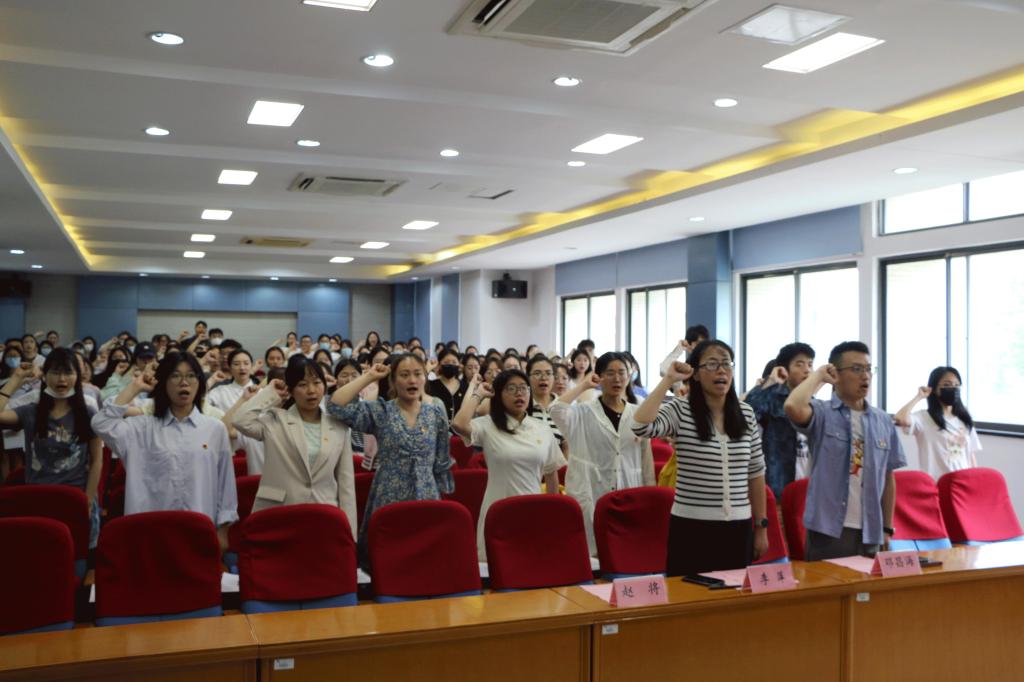 会议伊始,在辅导员赵将的领誓下,全体毕业生党员面向党旗,高举右拳,在铮铮誓言中重温入党初心,让党员们牢记职责使命,更加坚定入党信念和为共产主义事业奋斗终生的决心。