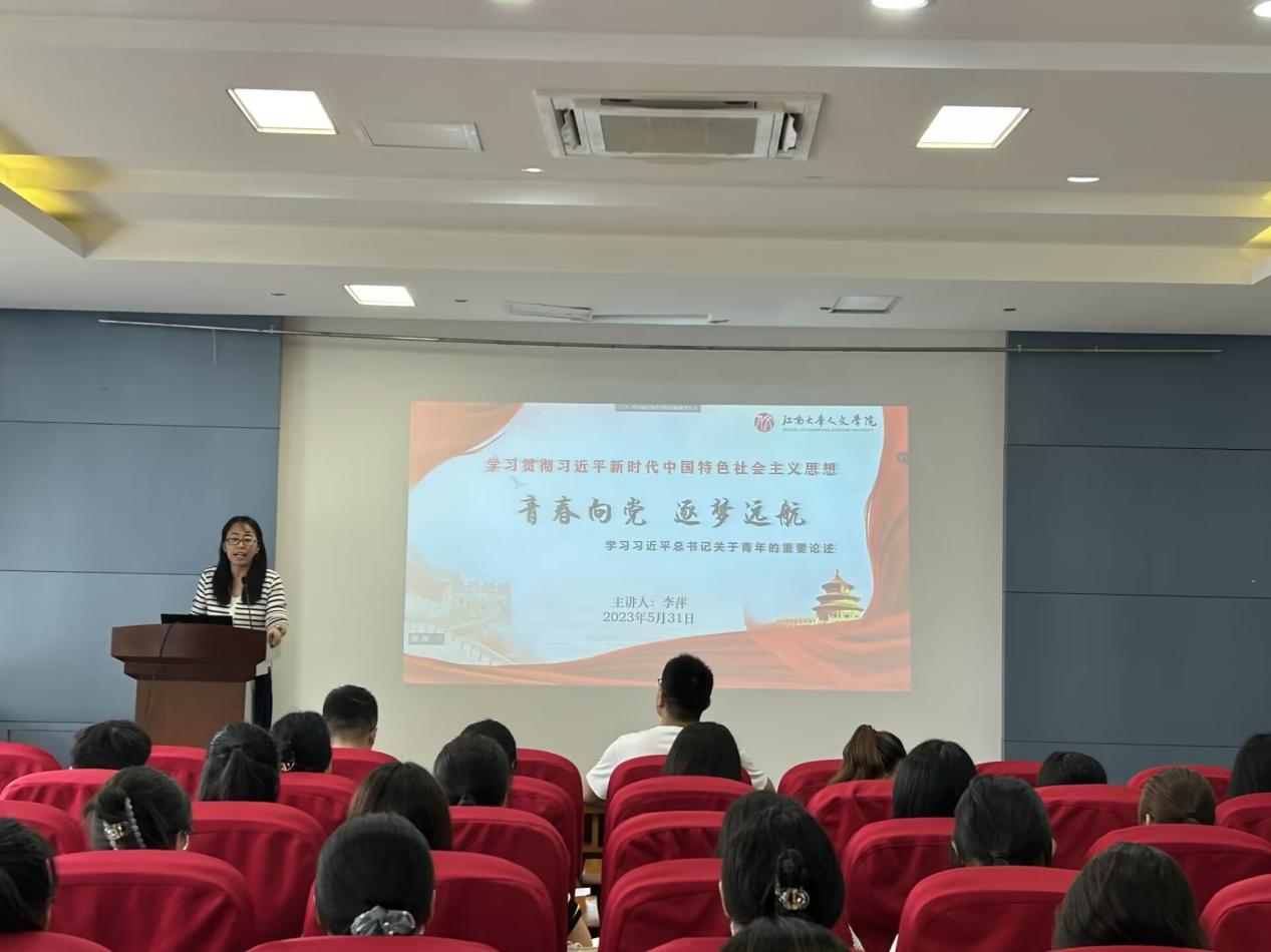 接下来,学院党委副书记、副院长李萍以《青春向党,逐梦远航》为题,为毕业生党员讲授毕业前最后一堂党课,教育引导毕业生党员以习近平新时代中国特色社会主义思想为指导,肩负起使命担当,努力成长为堪当民族复兴重任的时代新人,并对毕业生党员提出三点希望:一是坚定理想信念,不忘入党初心。以高度的历史责任感和奉献精神,胸怀家国天下,找准方向、锤炼本领,肩负起青年党员的使命担当。二是坚持勤学实干,敢于担当作为。在学思践悟中激发青春之力。三是坚守廉洁底线,永葆党员本色。加强党性修养,培养高尚的道德情操,始终做到自重、自省、自警、自励,充分发挥出青年党员的先锋模范作用。