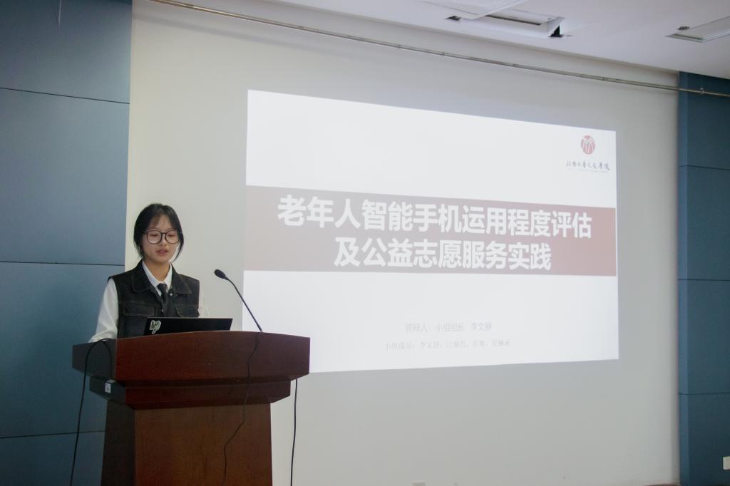 本届公益创新大赛以“社区公益教育”为主题,自今年三月份启动,共计有29支团队参赛。经初赛评审,遴选出14支团队进入项目路演环节。他们分赴信成花园社区、太湖国际社区、万科社区、板桥社区、长广社区等十几个社区开展社区公益教育活动。最终,他们带着项目路演后的满满收获进入决赛答辩环节。答辩现场,各团队围绕老年人智能技术运用、家庭教育与阅读表达、非遗传承、人文艺术、生活技艺等诸主题,就选题背景、可行性分析、调研及实践内容、项目特色与创新点、项目实施成果、展望与反思等诸多方面对项目进行了精彩的陈述介绍。答辩过程中,评委老师们结合项目材料及现场实际汇报情况对各项目进行了提问和点评,在充分肯定参赛学生实践能力的同时,提出了宝贵的修改意见。