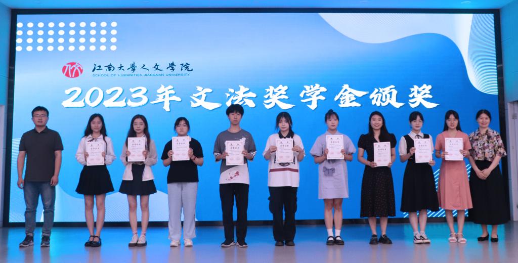 紧接着进行学院2023年文法奖学金颁奖仪式,获奖同学依次上台领奖,现场嘉宾领导为获奖同学和团队颁发证书,并合影留念。在企业家寄语环节,费晓燕女士对同学们在公益服务上的奉献与探索表示肯定,从“行知”二字谈起,号召青年学子“行为知之始”,公益要从实践做起,在行动中不断加强自己的认知,提高自己的服务意识。随后与会嘉宾为学院2023年基层就业志愿者代表赠送鲜花和礼物,希望志愿者们在基层继续发光发热。