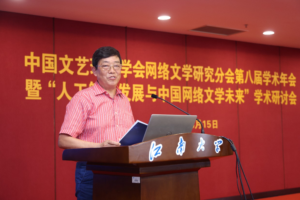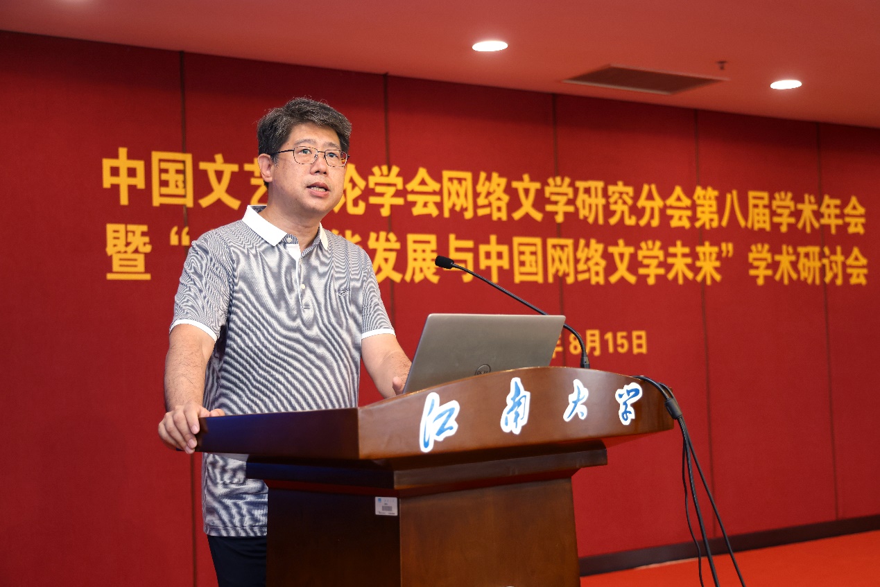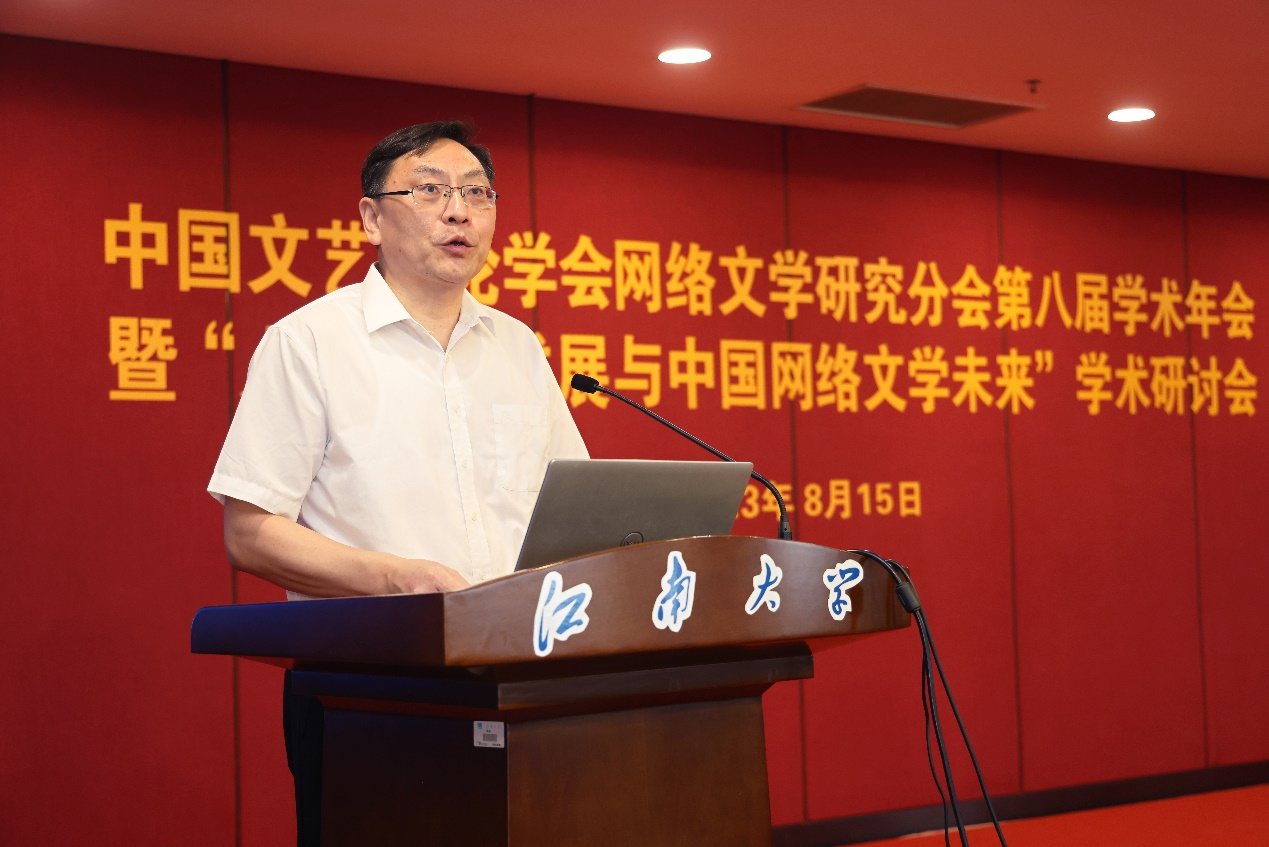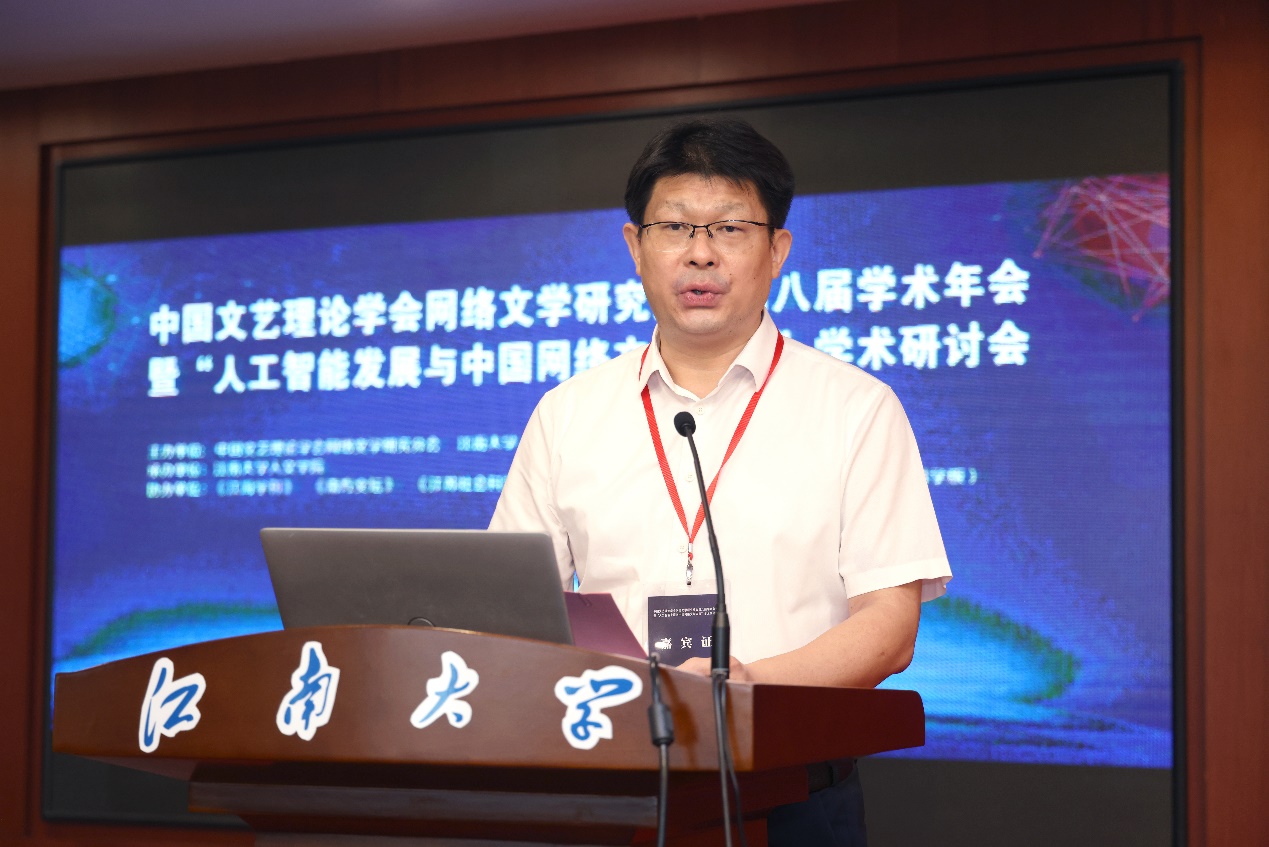 为回应人工智能发展对于中国网络文学发展提出的机遇与挑战,促进网络文学助力“文化强国”“网络强国”建设,8月15日,中国文艺理论学会网络文学研究分会第八届学术年会暨“人工智能发展与中国网络文学未来”学术研讨会在江南大学隆重举行。本次论坛由中国文艺理论学会网络文学研究分会、江南大学、中南大学网络文学研究院、《文学评论》主办,必赢626net入口首页承办,《江海学刊》《南方文坛》《江苏社会科学》《南京社会科学》《江南大学学报(人文社会科学版)》协办。江南大学党委常委、副校长吴正国,中国文艺理论学会秘书长王峰,中国文艺理论学会网络文学分会会长欧阳友权等出席论坛。150余名来自国内外高等院校、学术期刊、科研院所的专家学者参与活动。