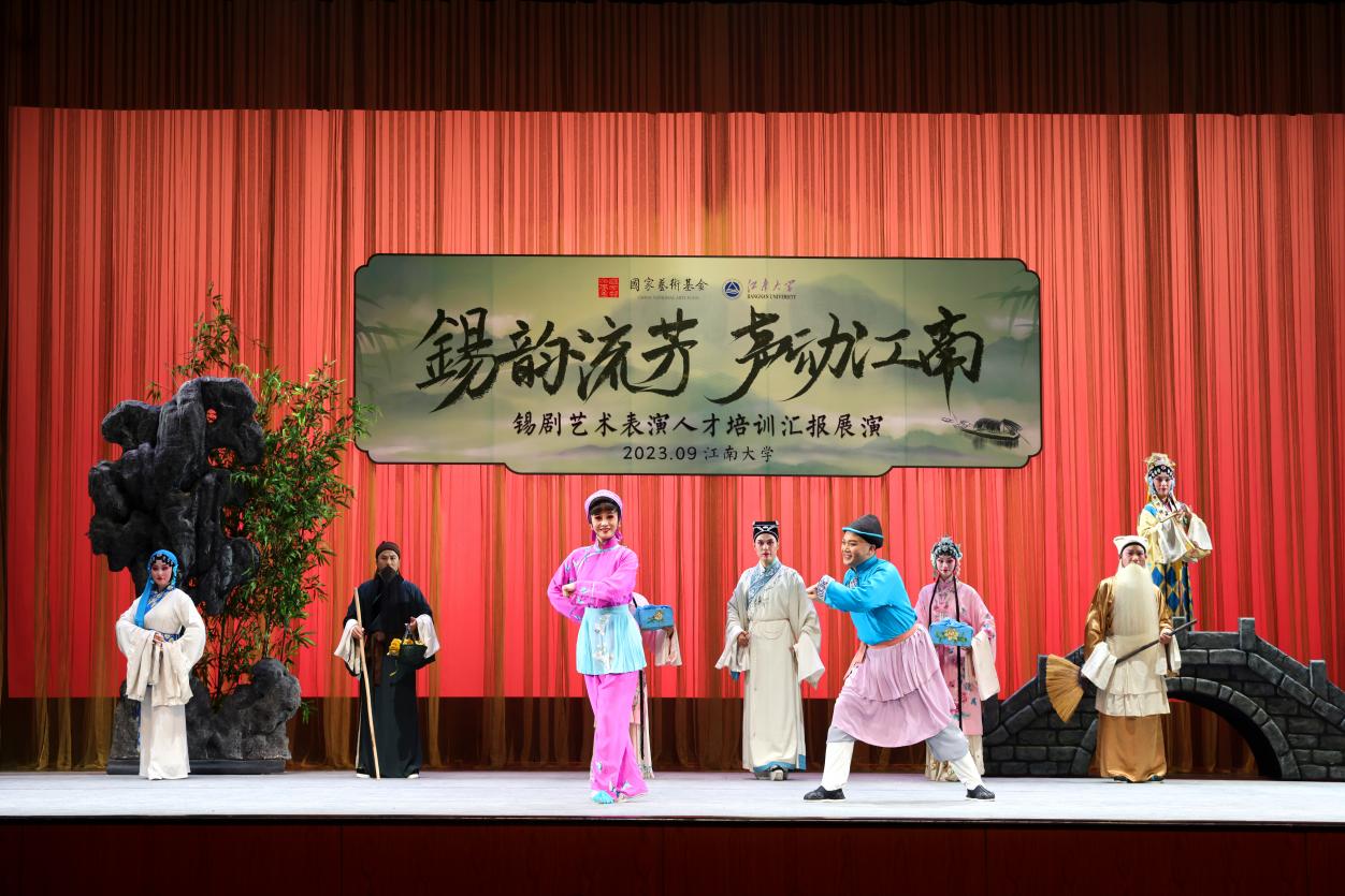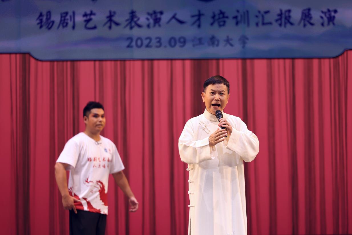 2023年9月26日晚19点,由国家艺术基金管理中心、江南大学主办,必赢626net入口首页、教育学院承办的国家艺术基金《锡剧艺术表演人才培训》成果汇报展演在江南大学文浩馆隆重举办,江南大学常委、副校长倪松涛在演出前致辞。