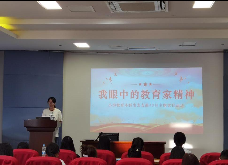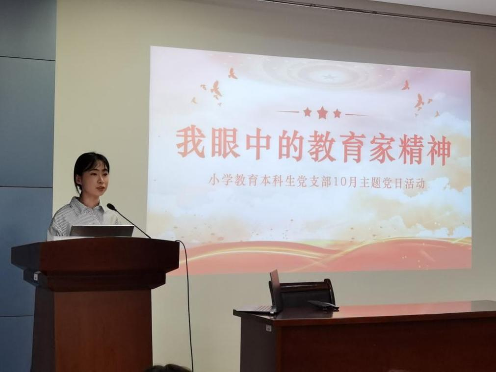 活动伊始,小学教育本科生党支部以视频采访的形式,将教育家精神的内涵及身边师范生眼中的教育家精神娓娓道来,结合个人经历对教育家精神进行个性化解读。支部党员带领同学们走进教育大家徐特立与顾明远,联系教育实践经历,强调师范生要把握实习实践机会,在实践中提升专业能力。以小切口展开大纵深,领悟教育家精神的核心要义。