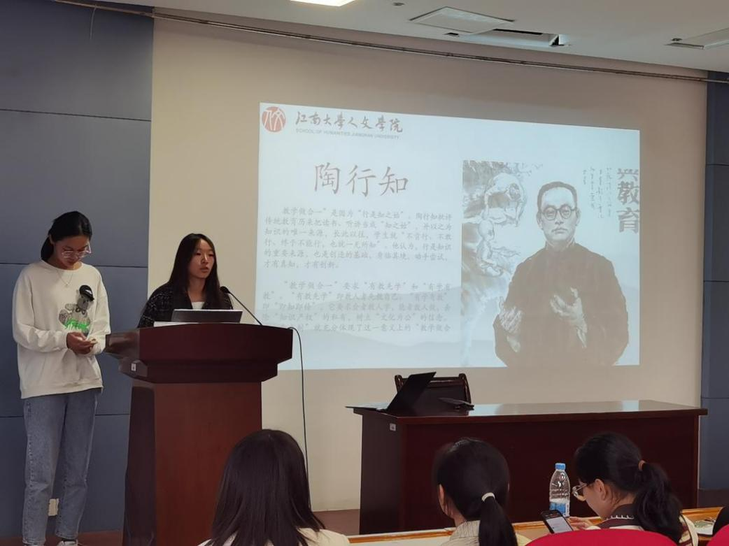 随后,2023级小学教育本科生团支部的各组同学回顾了习近平总书记对教育和教师行业的殷切关怀,以访谈、问卷、朗诵、故事演绎等不同形式,对话一线教师,分享对教育家精神的见解。通过多样化解读,展现教育家精神的具体呈现样态,感悟人工智能时代背景下教育的新方向,坚定师范生教育初心。