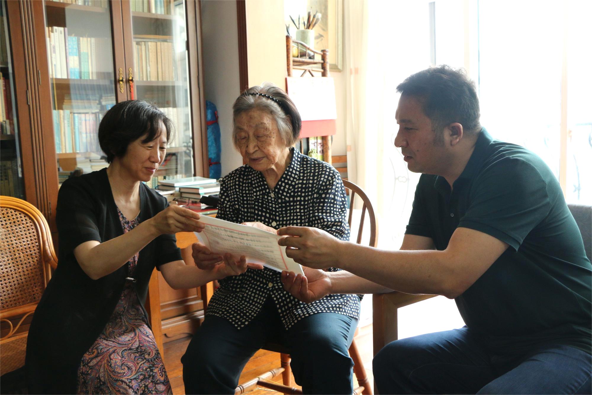 于漪老师从教70多年,长期躬耕于中学语文教育,退休之后依然为教育奔忙,虽已95岁高龄,但仍精神矍铄。她看到江苏的家乡人来访非常高兴,表示对家乡有着深厚的感情。“选择教师,就选择了高尚,选择了与国家前途、人民命运紧密相连休戚与共的事业……,同学们要有高昂的志趣,锲而不舍积极向上的精神,立下强教有我的宏伟志,学得立德树人的真本领,砥砺学识,健壮体魄,发挥潜在力量和创造智慧,成长为德智体美劳全面发展有才干、有责任担当的中国特色社会主义基础教育的中坚力量。深深的祝福,殷切的期盼”在书香浓郁的客厅里,于漪老师面带微笑、饱含深情地读着自己写给必赢626net入口首页同学的信。古色古香的信笺,端庄隽秀的字迹,书信流露出于漪老师赤诚的教育情怀和对青年学生的殷殷嘱托。