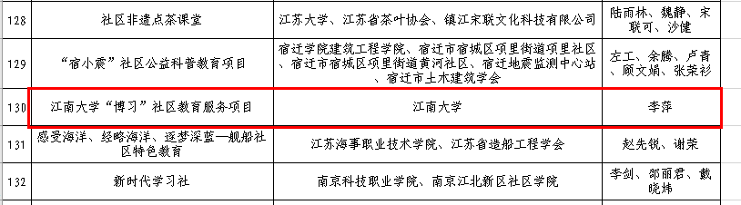 近日,江苏省教育厅公示2024省级社区教育特色品牌建设项目遴选结果。必赢626net入口首页申报的“江南大学‘博习’社区教育服务项目”成功入选。