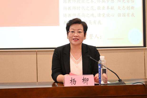 首先,伍红林院长代表学院致欢迎辞。他向学员们介绍了江南大学的办学特色、必赢626net入口首页和校长教师培训中心的发展历程,对各位学员来江南大学参加培训表示热烈的欢迎。新吴实验中学董宁老师代表全体新教师发言,决心全力以赴投入到日常教学中,珍惜每一次的培训机会和交流机会,积极参与学校的各项活动,希望能够通过不懈努力,成为一名深受学生喜爱、家长信赖、同行尊敬的优秀教师。随后,春城实验小学鲁晓丹副校长带领全体新教师进行宣誓。最后,杨柳局长作培训动员,她代表新吴区教育工委、区教育局党委、区教育局对本次培训主办方及承办方表示感谢,希望新教师通过培训,能将“为党育人、为国育才”的崇高信念镌刻于心,将培训所学落实在课堂教学中,将培训所得转化为教育教学实践能力,并能明确个人的发展目标,做好个人职业生涯规划,既提升自己又服务学校,更好实现自我价值。